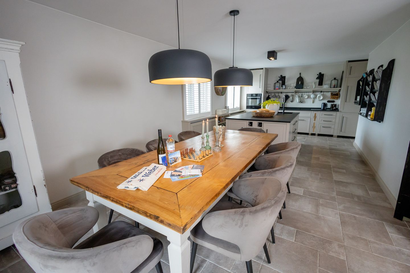 - Küche mit umfassender Ausstattung und großem Esstisch