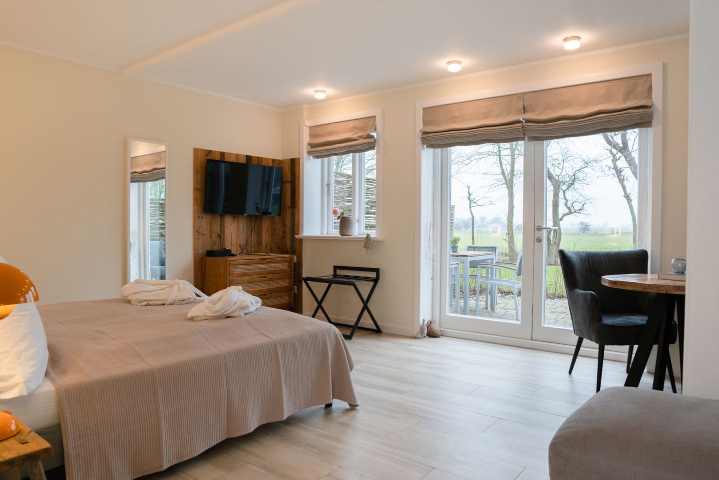 Unsere Landliebe Superior Zimmer für bis zu 4 Personen mit Terrasse bieten auf ca. 40 m² ein großzügiges Hauptzimmer